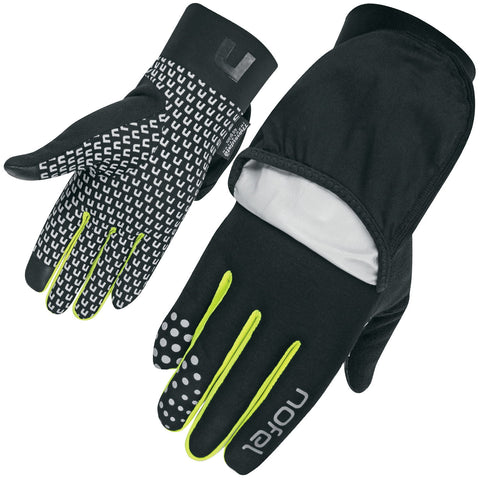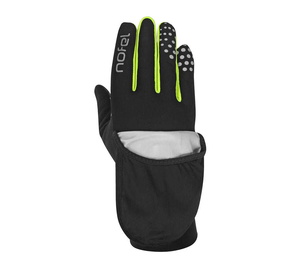 Nofel Flash Mitten with Flip Flop style, You can use it as a glove and when it's too cold or windy or its raining Never get afraid of that anymore, Pull out the Cover from External Pocket and pull it on the fingers , You can use it as a key pocket or to keep Cards, Cash etc. Flash Mitten is made with Soft and nice hand feel brushed Polyester spandex, And the mitten is Insulated with Thinsulate to keep your hands warm in any temperature. Windproof Waterproof Mitten keeps you dry and Touchtec fingers enables you to operate any touchscreen devices, Silicone prints on the palm give you extra Grip and Hi-Vis logos keeps you Safe and Visible. Enjoy the run with Nofel Flash Mitten.It got you covered.